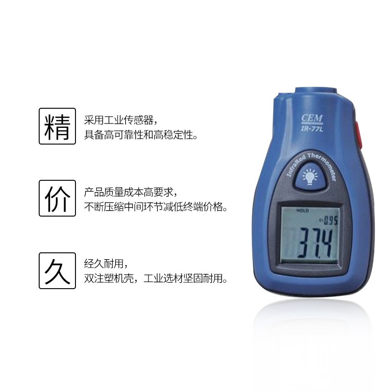 產(chǎn)品特點】 內(nèi)置式激光瞄準(zhǔn) ·距離目標(biāo)比6:1(能夠在一步外測量2米內(nèi)區(qū)域的溫度) ·便攜式易使用:將儀器控制在測量區(qū)域的兩步內(nèi),按下按鈕就可以完成測溫 ·帶背光源液晶顯示屏,℃/℉選擇按鍵 ·自動數(shù)據(jù)保持,自動關(guān)機 ·電池低電能顯示 ·適用于:交流電源和制熱系統(tǒng),對冰箱/洗碗機/制冰機和烤箱等電器進行溫度監(jiān)控,確保正確的烹飪/烘烤及儲藏溫度