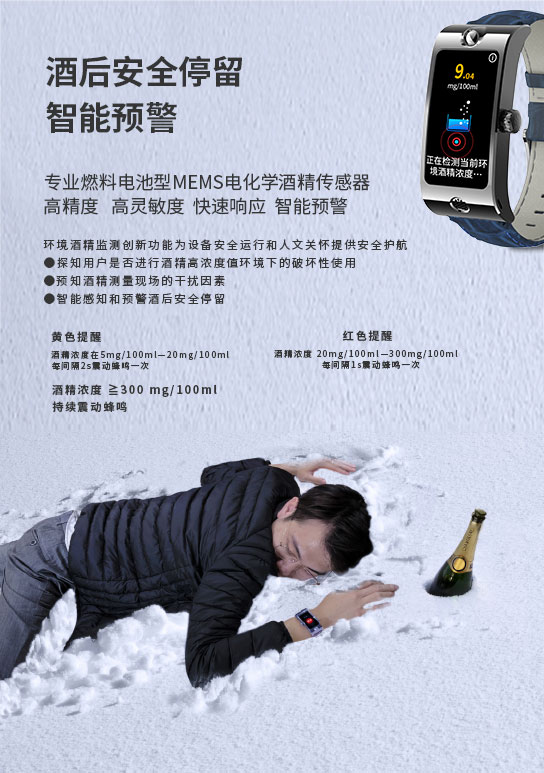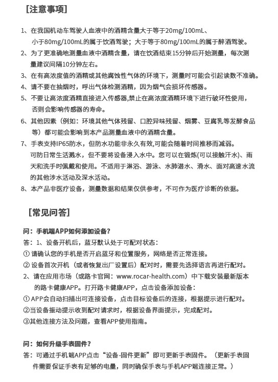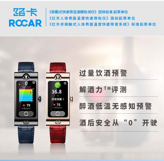 CEM路卡(ROCAR)智能酒精檢測手表健康飲酒喝酒預警酒精測試大屏幕心率血氧