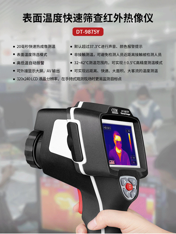 分辨率:160*120、圖像幀頻:50HZ、篩查測溫范圍:32-42℃、AV輸出大屏全屏顯示
