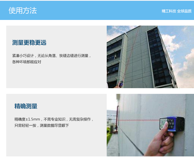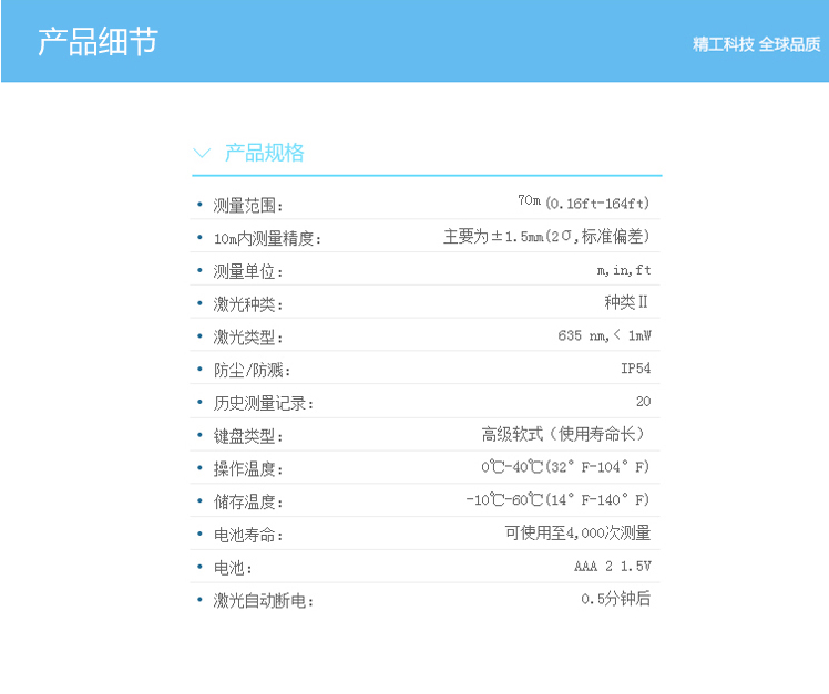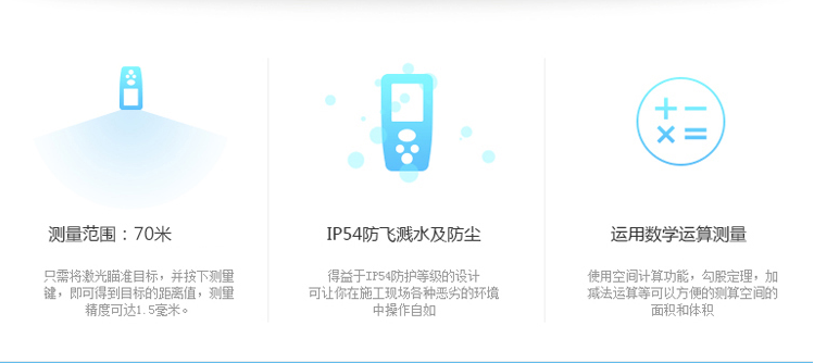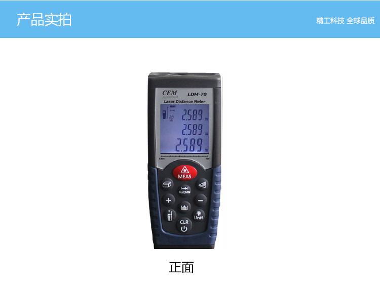 LDM-70為CEM自主設(shè)計(jì)、研發(fā)和制造的工業(yè)級(jí)遠(yuǎn)距離手持式激光測(cè)距儀,使用簡(jiǎn)單安全,僅需單人操作無(wú)需借助其他工具,即使在非??量痰臏y(cè)量環(huán)境中也能輕松應(yīng)對(duì)。65米/70米能滿足更多工業(yè)與建筑行業(yè)的需求。 1、面積體積的計(jì)算功能; 2、運(yùn)用勾股定理間接測(cè)量; 3、加減功能; 4、連續(xù)測(cè)量功能; 5、最大與最小距離跟蹤; 6、背光顯示與多行顯示; 7、蜂鳴提示; 8、精度±1.5mm; 9、外觀小巧,雙注塑防滑軟膠超舒適手感。