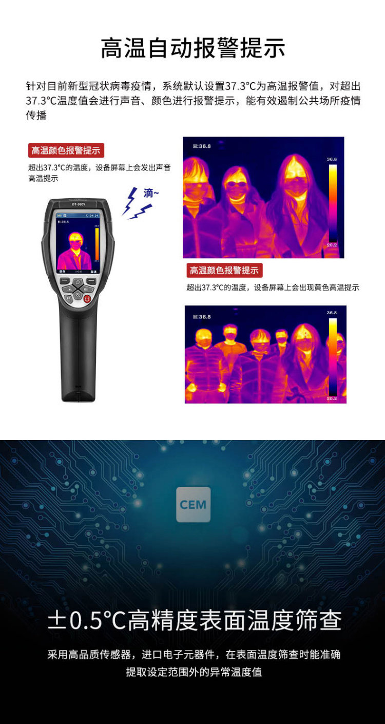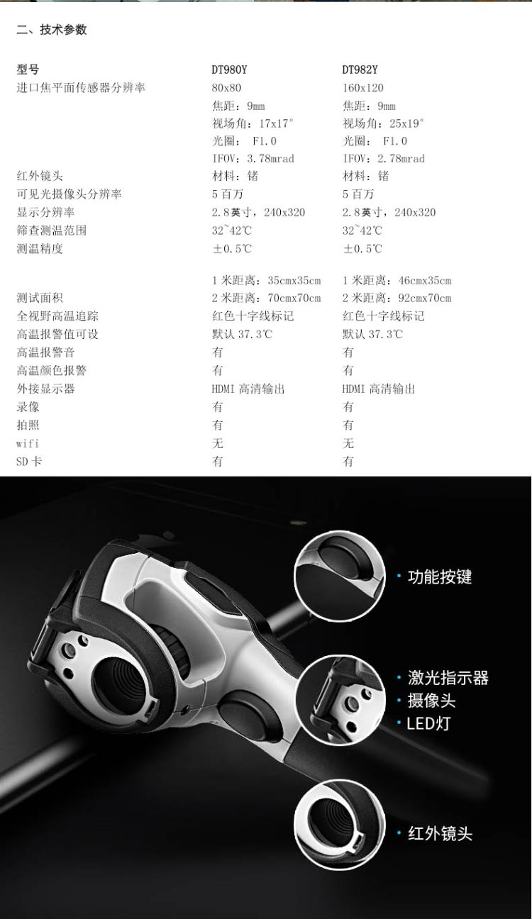 分辨率:160*120、圖像幀頻:50HZ、篩查測(cè)溫范圍:32-42℃、可外接HDMI大屏顯示