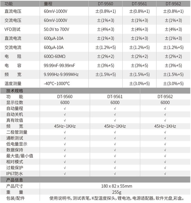 華盛昌DT-9560工業(yè)級數字萬用表產品產品特點: