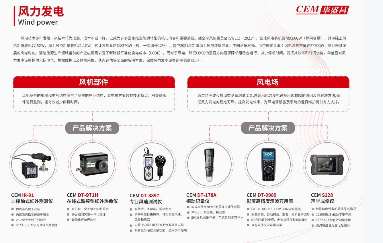 電新增接機(jī)7.6W,海上風(fēng)電斯新增裝機(jī)211G6W。累計(jì)裝機(jī)量達(dá)到3375W(較上一年增長(zhǎng)12%),其中201年新增海上風(fēng)電較機(jī)容量,中國(guó)占據(jù)80%,而中國(guó)累計(jì)海上風(fēng)電裝機(jī)容最達(dá)7OCSW,將迎來(lái)其發(fā)展的高光時(shí)刻。浦潔能源生產(chǎn)領(lǐng)域當(dāng)前的產(chǎn)業(yè)應(yīng)用需求是不斷降低平淮化度電成本(LCOE),而對(duì)于風(fēng)電,降低LOC的重要方向是保嘀機(jī)組穩(wěn)定運(yùn)行,減少停機(jī)時(shí)間,發(fā)揮其效率和時(shí)間優(yōu)勢(shì)。華盛昌對(duì)風(fēng)力發(fā)電設(shè)備提供包括電氣、機(jī)械維護(hù)以及數(shù)據(jù)采集,狀態(tài)評(píng)估等全面的解決方案,保障風(fēng)力發(fā)電設(shè)備的平穩(wěn)高效運(yùn)行。